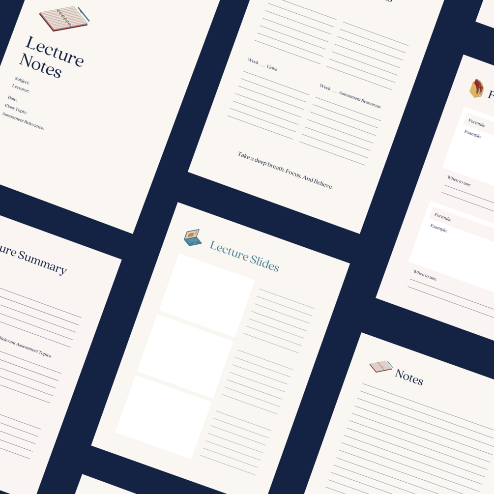Each template has been designed with simplicity to keep your plan clear and focused. The tinted background has been used to ease the strain on your eyes when studying.